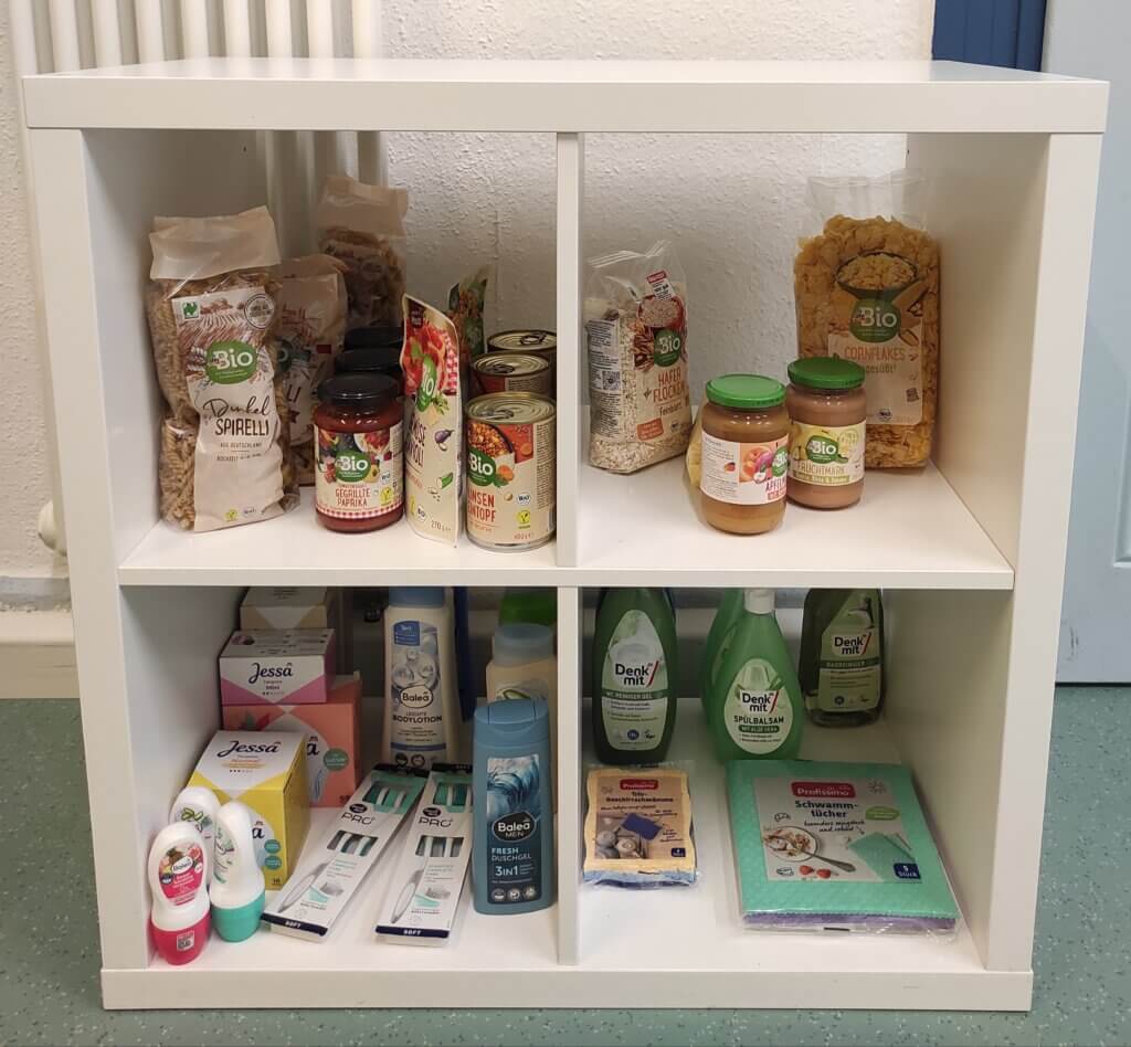 Ein Regal mit Lebensmitteln und Hygieneartikeln mag auf den ersten Blick unscheinbar wirken. In der ...