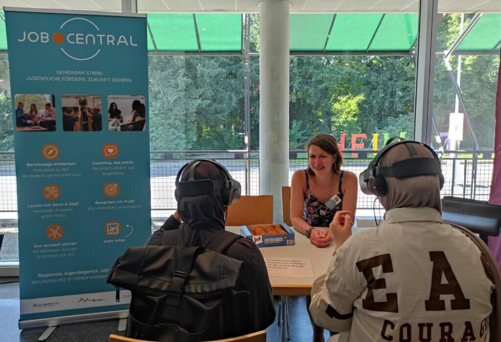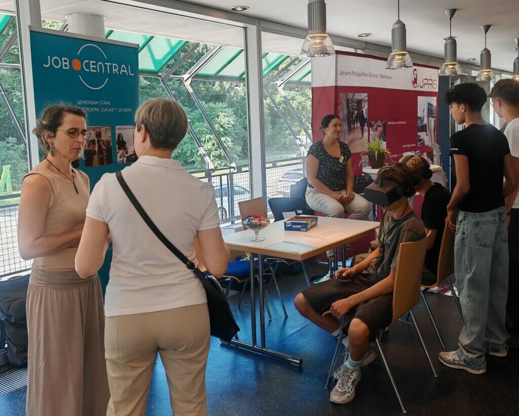 Wir haben uns sehr über das große Interesse an unserem Stand gefreut – vor allem vormittags machten zahlreiche Schulklassen Halt bei Job Central und ließen sich erste Fragen zu ihrer Berufswahl beantworten, wagten einen Blick in die VR-Brillen oder vereinbarten direkt erste persönliche Termine in der Beratungsstelle!